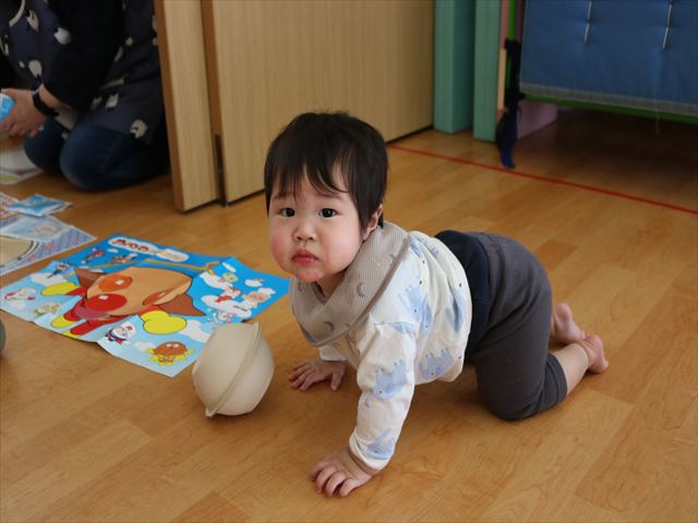 お誕生児にはみんなからの質問コーナーと歌のプレゼント🎁先生からの出し物は『だるまさんが』のペープサートでした。