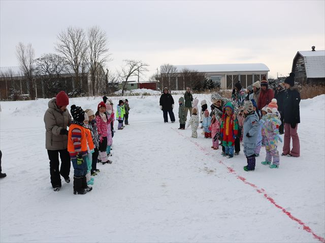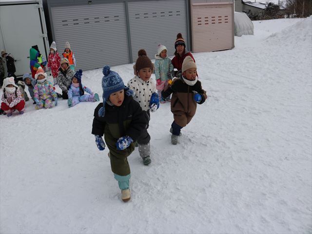 今日は雪中運動会をしました。寒い中での運動会となりましたが誰も泣かずに参加していましたよ!
