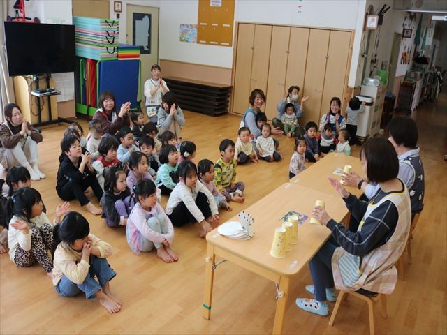今日はトドックとあやりんが保育園に、ニコニコ笑顔を届けに来てくれました。