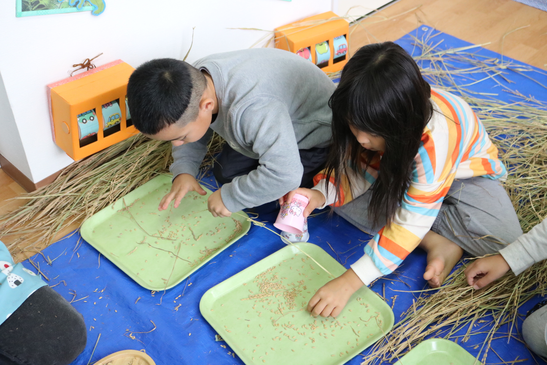 ご飯になるまで時間と労力がこれほどまでにかかるのかと、子どもたちと共に感じながら作業しました🌾