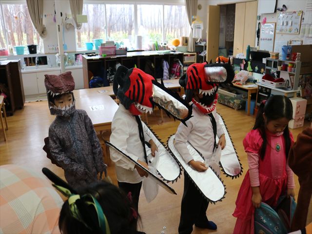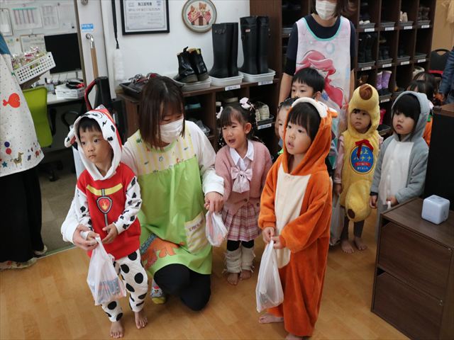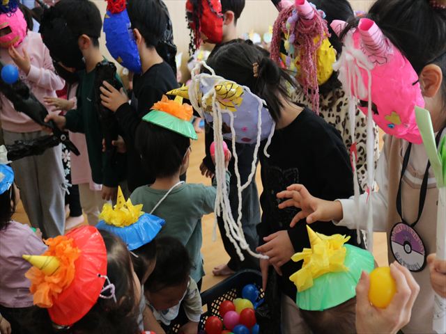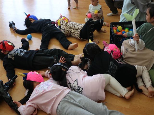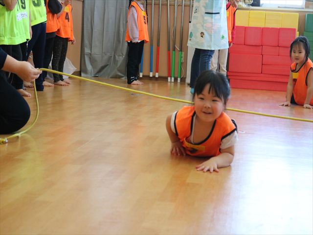 しっぽ取りゲームでは、取られてもしっぽをもらいに行ってまたスタートできるというほぼ休みなしでしたが、一個でも多くとろうと皆真剣でした。(1個も取れずに泣いてしまうお友達も…)
