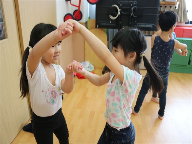 慣れたもので少し大きくなると音楽が聞こえただけで何の動きをしているのかがかわかり、廊下にいても他のクラスがやっている音楽に合わせて動き出してしまうお友だちもいました🎵かわいい✳