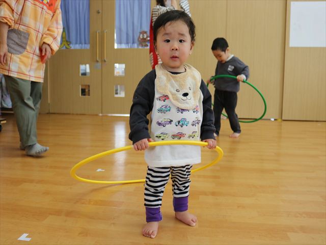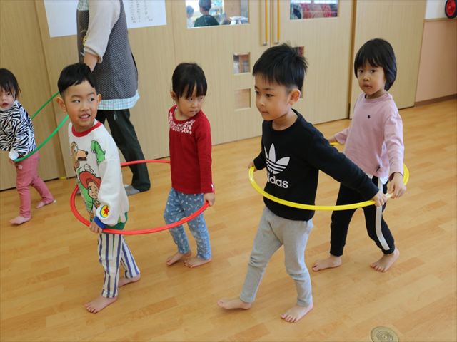 4月から始まったリトミック、先生に抱かれていた乳児さんはピアノの音を聞いたり、周りの動きを見て、体全体で音や曲を感じとれるようになり、年長になると高度なリズム、音の聞き分けや自分でリズムを作るまでになりました。月2回程続けてきた成果は、どの年齢の子ども達にもみられ、リトミックの素晴らしさを感じています。来月10日が最後のリトミックになりますが、来年度も継続していきますので楽しみにしていてください。