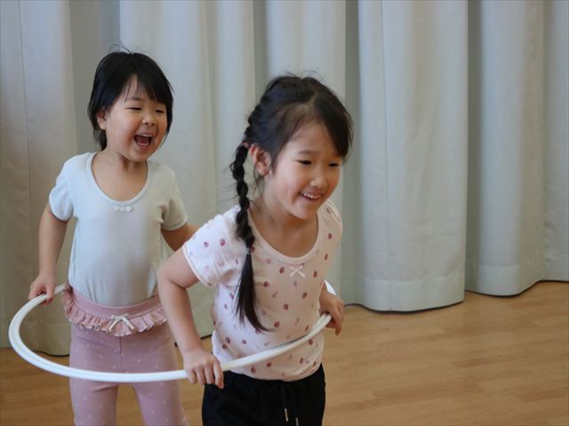 フラフープからフラフープへ捕まらないように逃げる、ネズミと猫のゲームもしました🐭🐱
