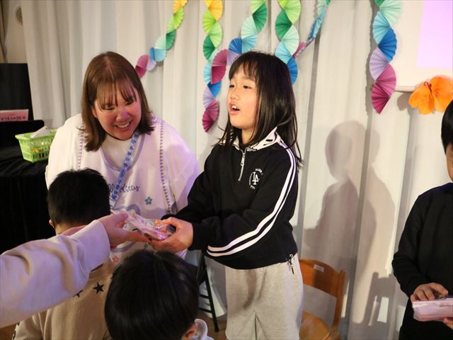 最後にみんなで作ったプレゼントをめろん組&中村先生に渡し、