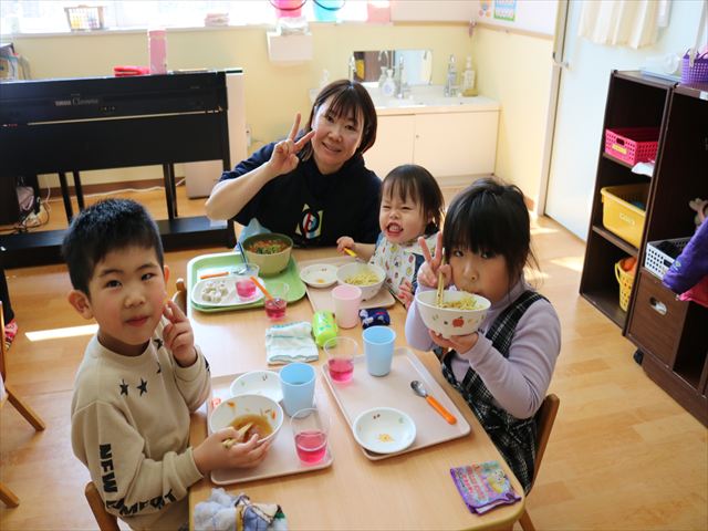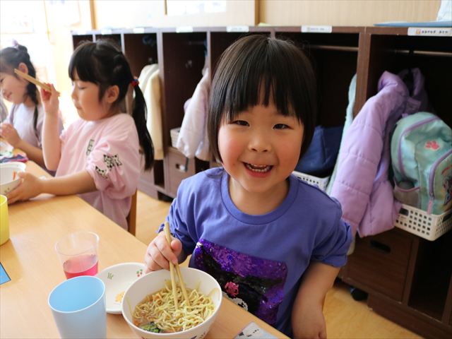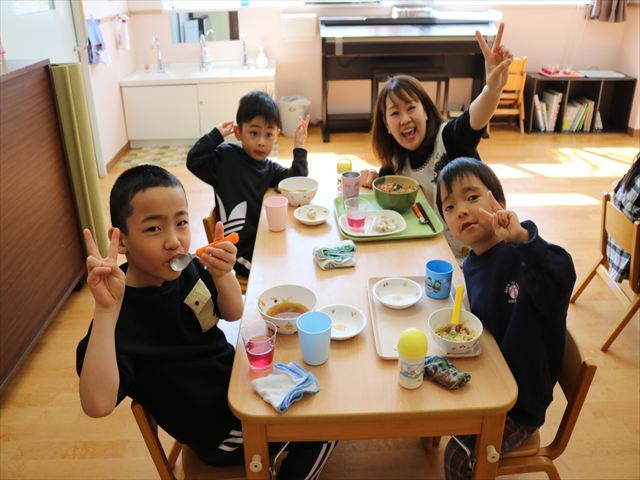 給食はなんと各クラスシャッフルで色々なクラスのお友だちや先生と