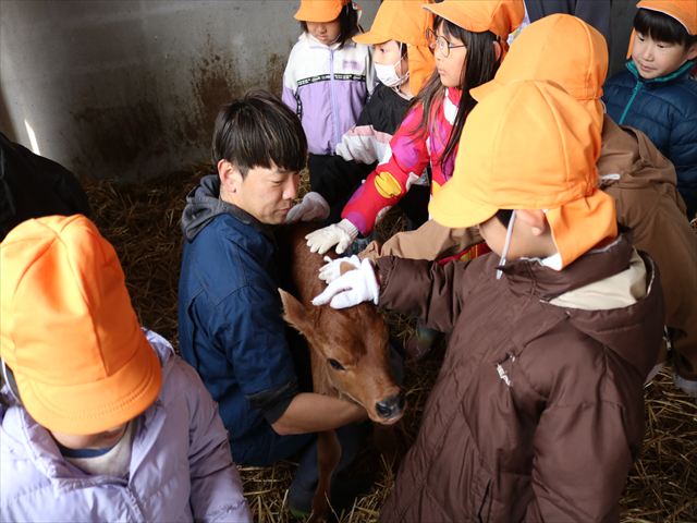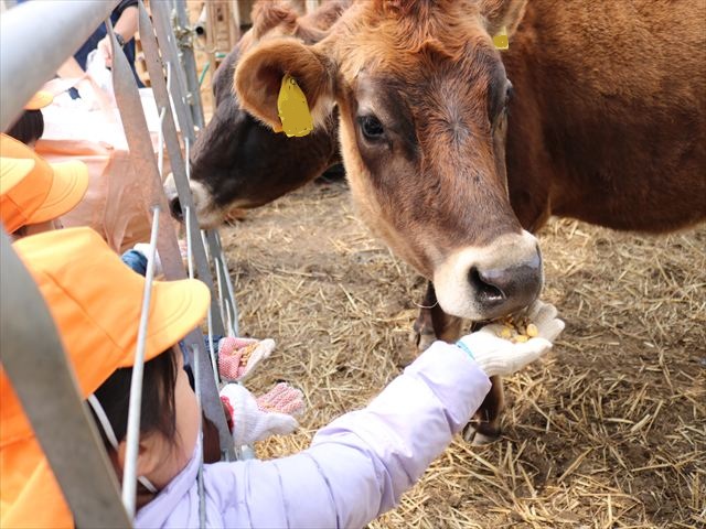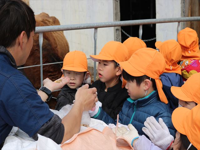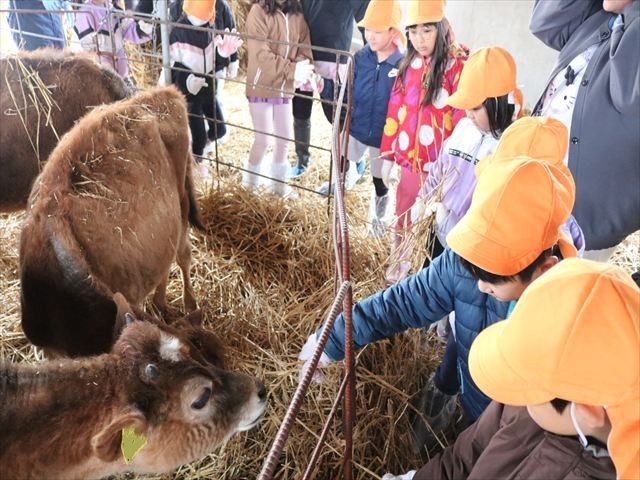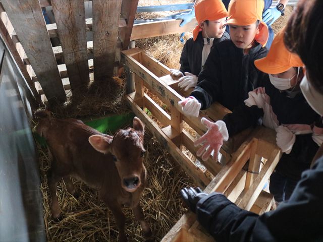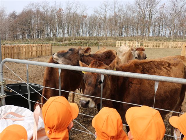 本物の牛さんを見せてもらうまでは「モ~」と鳴き真似していた子どもたち🐄