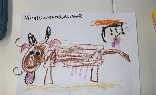 帰ってきてからはたくさん見てきた�牛さんを思い出しながら絵を描きました🖍