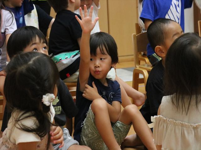 今月は乳児さんのクラスから3人と、もも組から1人の4名だったので、質問コーナーはあまりできませんでしたが、