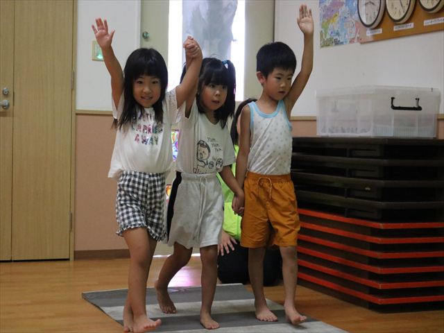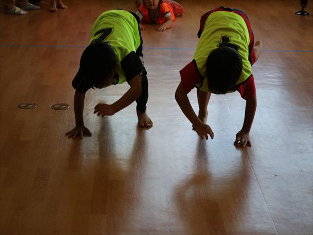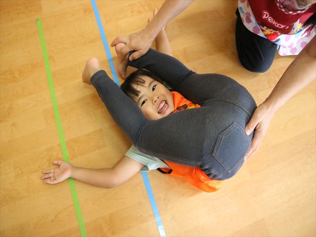 そして、足や腕や背中を伸ばし、最後はみんなが大得意なブリッジをします!