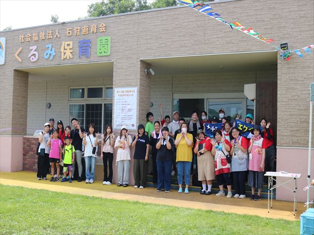 集合写真を撮るときには、お兄さんお姉さんに抱っこしてもらって嬉しそうな子ども達でした。