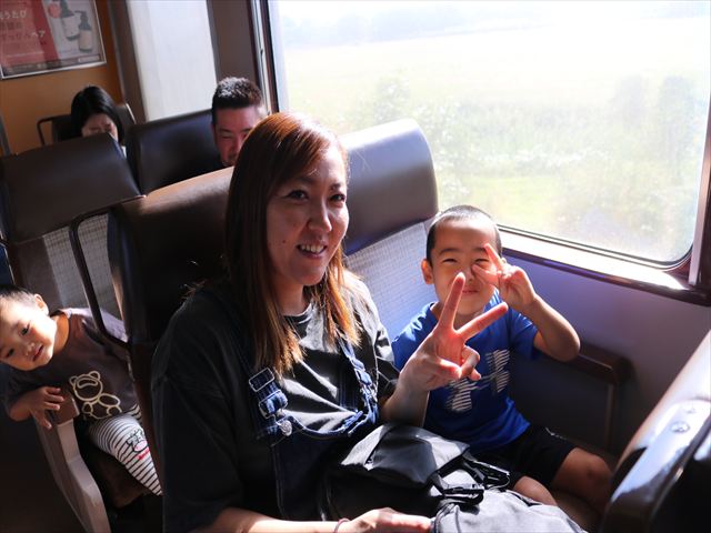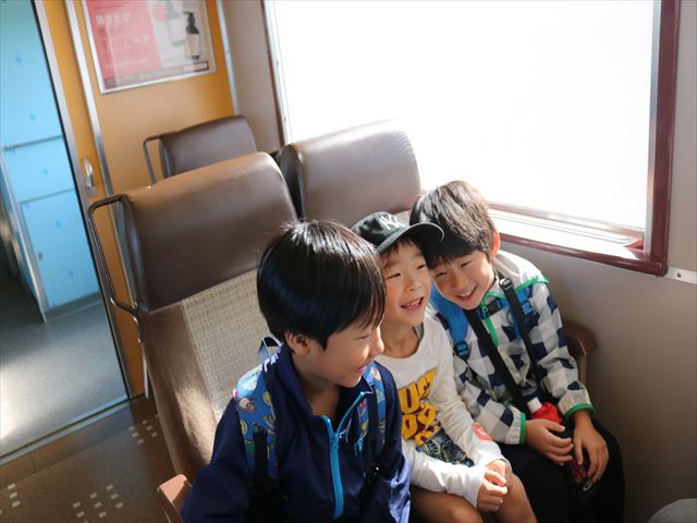 電車の中では、仲良しのお友だちと座ったり、ママやパパと座ったり!