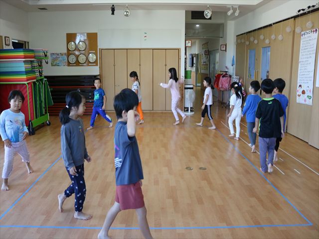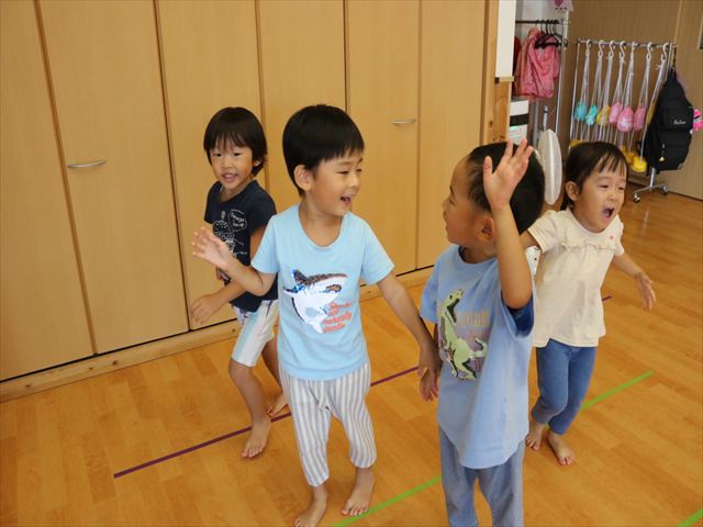 どのクラスもピアノの音に合わせて今日も楽しく身体を動かしていましたよ。