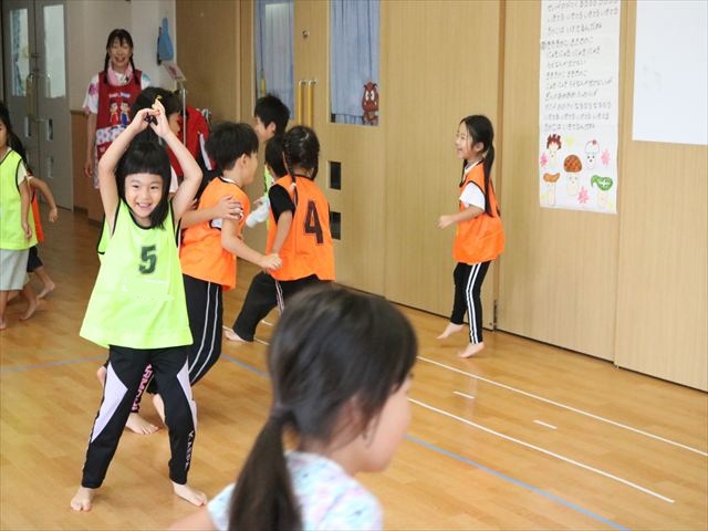 今日はめろん組、ぶどう組の体育教室の様子を見るために