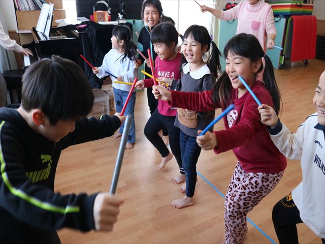 動きながら音の強弱や長さを身体で覚える中で「四分音符」「八分音符」ということを教えてもらいました。