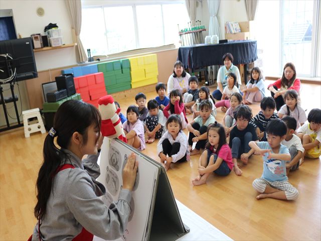 今日は避難訓練と9月のお誕生会、そしてヤクルト出前講座がありました。