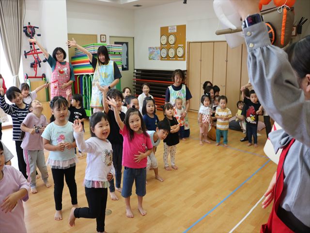 自己紹介をしてもらってから、踊りやけん玉を披露してくれたり、折り紙を一緒に折ったり、絵本を読んでくれたり、