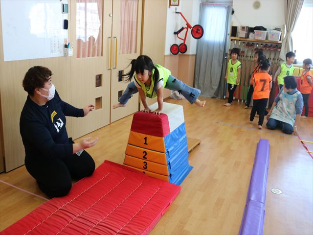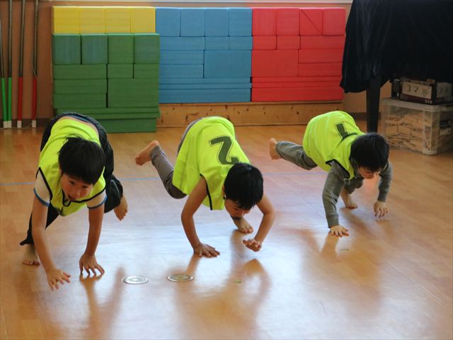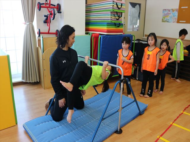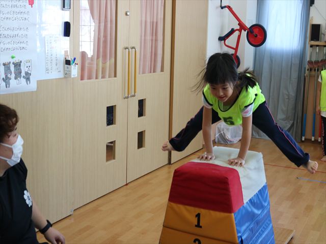 最後に逆上がりと跳び箱を行いました。逆上がりはコツをつかめばできそうなお友達が各クラス何人かいて、今後が楽しみです(^^)