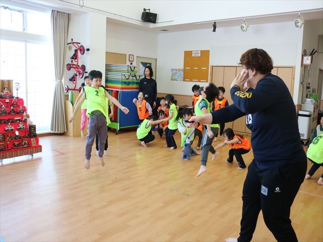 スポレク出前講座では、久しぶりにコーチ達にあって嬉しそうなぶどう組・めろん組の子ども達(≧▽≦)